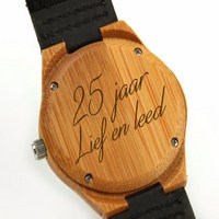 Wij kunnen onze houten en lederen producten graveren met uw logo of persoonlijke boodschap.